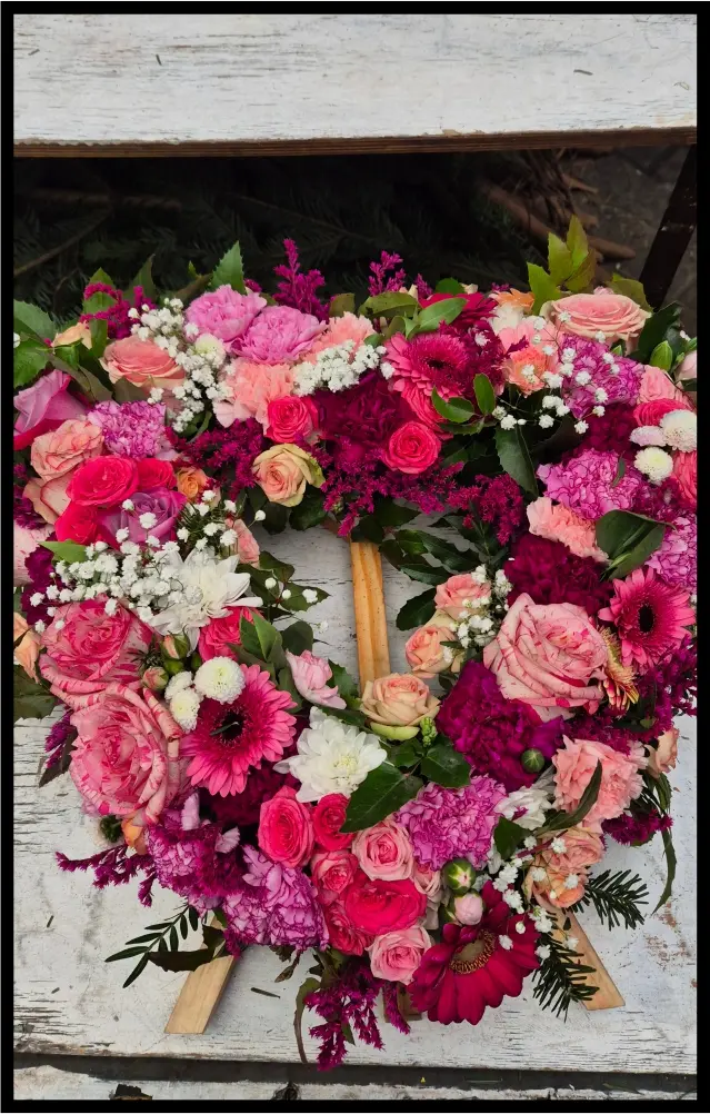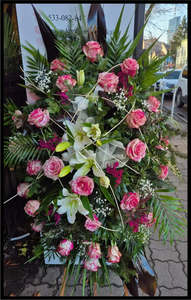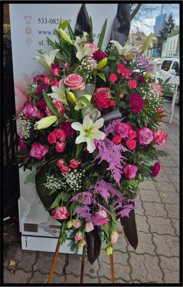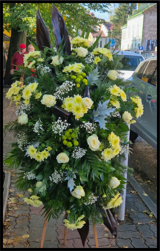 Oferujemy szeroki wybór wieńców, wiązanek pogrzebowych, a także kompozycji nagrobnych. Proponujemy zarówno wersje klasyczne jak i bardziej nietypowe (np. w kształcie serca). Tworzymy eleganckie wieńce, stroiki i wiązanki pogrzebowe z kwiatów świeżych, sztucznych, oraz mieszanych.